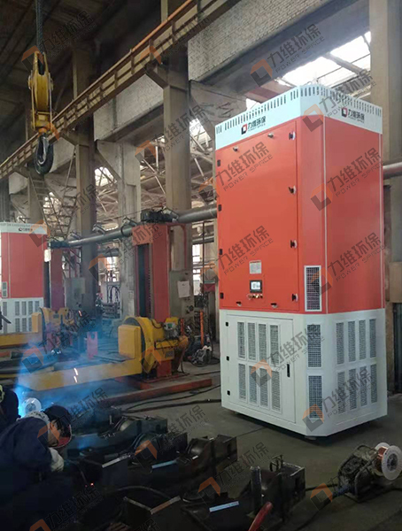 Challenge: It is known that the amount of welding consumables consumed every day in the workshop is about 890kg, and the total area of the welding area is 48m*18m+84m*24m=2880㎡. According to the on-site survey, the polluted area is relatively large and there are many procedures in one workstation. If the traditional central pipeline purification system is adopted, the pipeline installation will be more difficult, the construction time will be long, moreover the fume generation points during the production process are different,this unfixity leads to a low utilization rate of the collection hood, which has a greater impact on production.